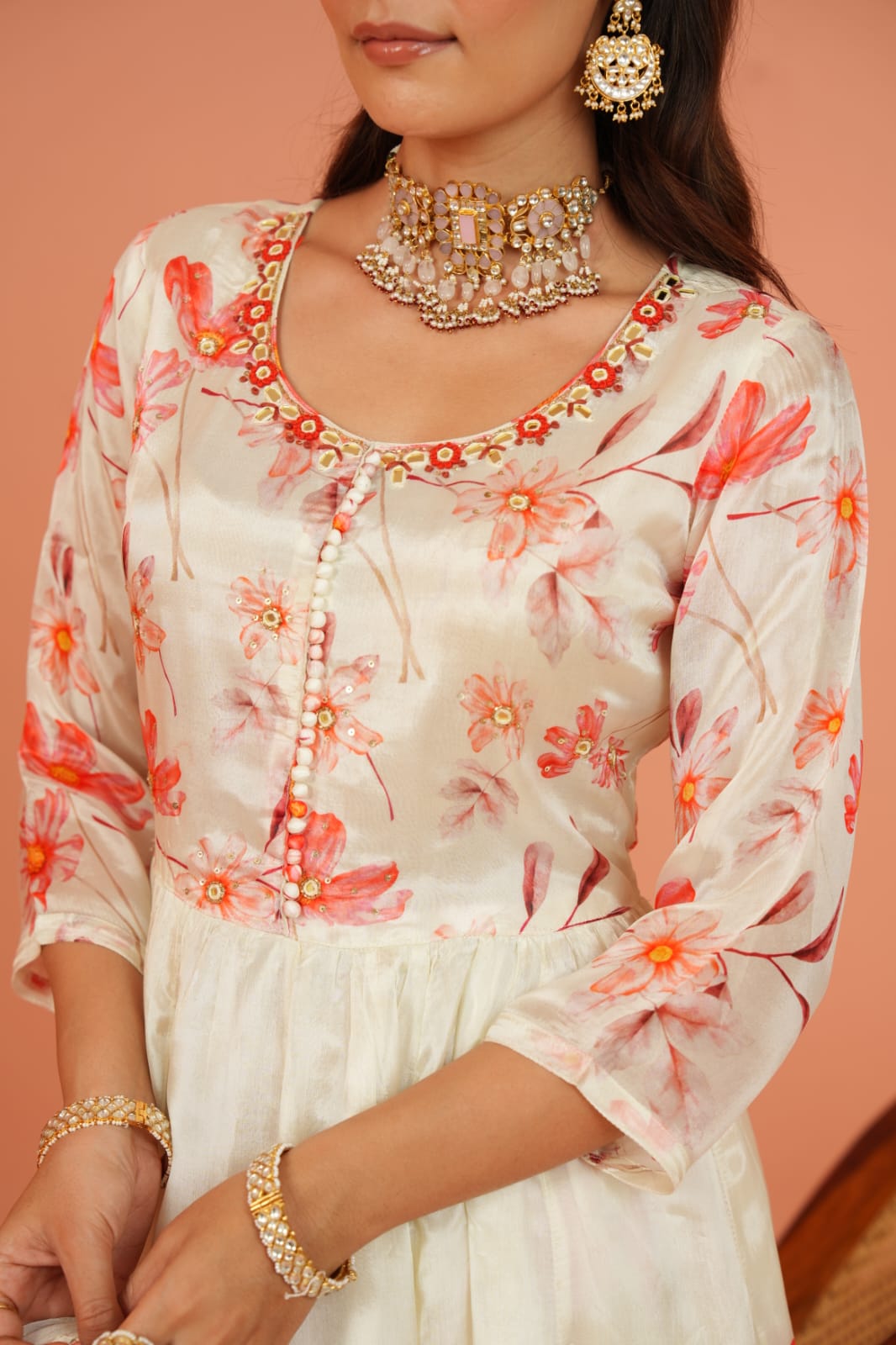 Floral Chinon Anarkali Kurti with Full-Length Skirt – Party Wear Set